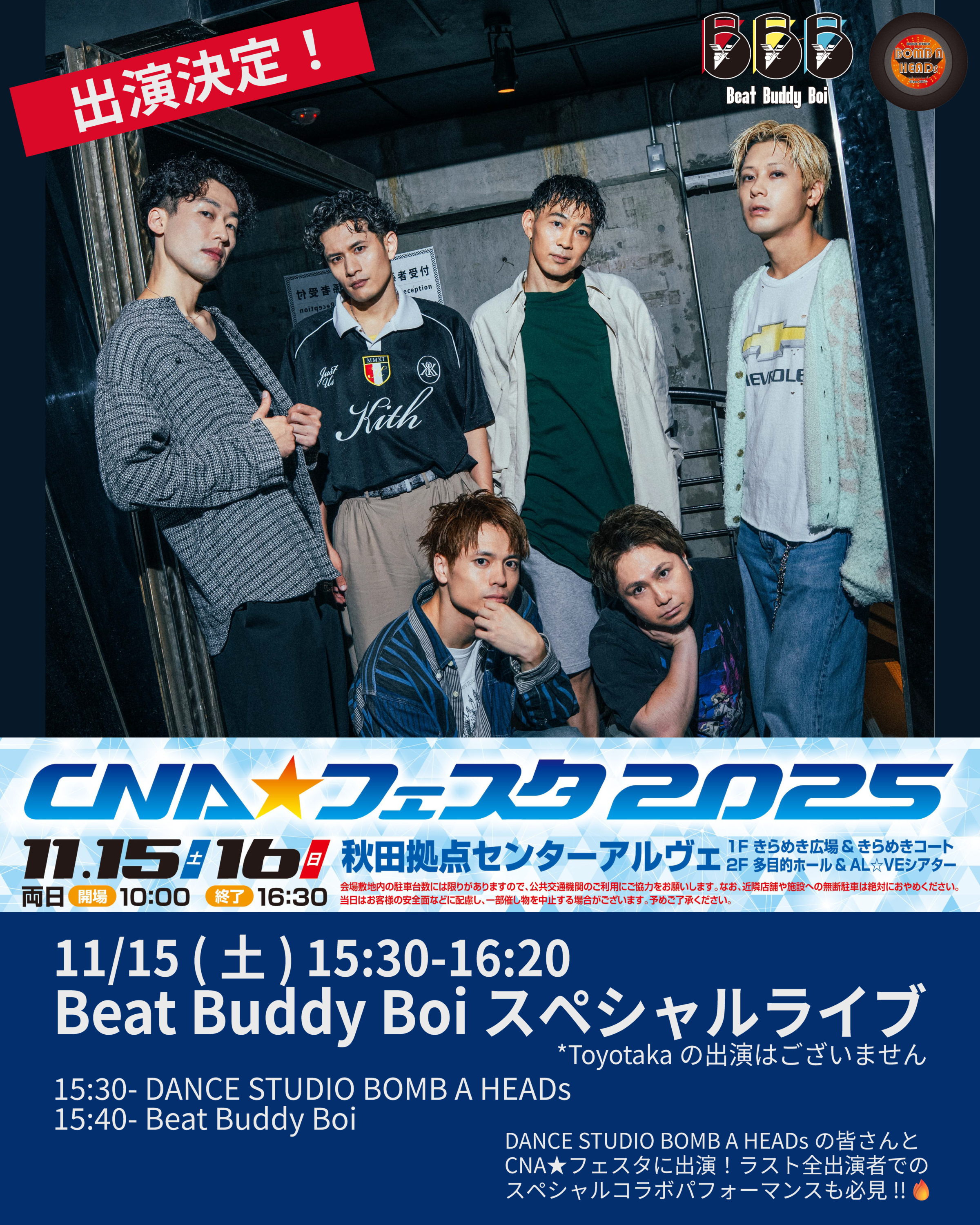 【LIVE】11/15 Beat Buddy Boi 秋田CNA★フェスタ2025 出演決定!